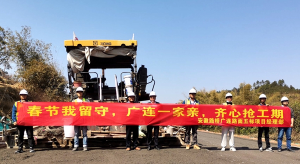 蕪黃高速是安徽省縣縣通高速重點(diǎn)建設(shè)項(xiàng)目之一。春節(jié)期間,蕪黃高速路基07標(biāo)70多名管理人員和施工作業(yè)人員放棄與家人團(tuán)聚的機(jī)會(huì),積極響應(yīng)“崗位作貢獻(xiàn) 工地過(guò)大年”的號(hào)召,奮戰(zhàn)在施工一線。