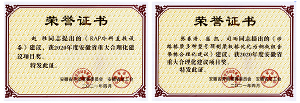 近年來,公司高度重視引導(dǎo)職工積極參與合理化建議,建立并不斷完善相應(yīng)激勵措施,2017年以來,公司累計獲得47項安徽省重大合理化建議項目獎,在降低生產(chǎn)成本、提高生產(chǎn)效率和推動公司高質(zhì)量發(fā)展方面作出了顯著貢獻(xiàn)。