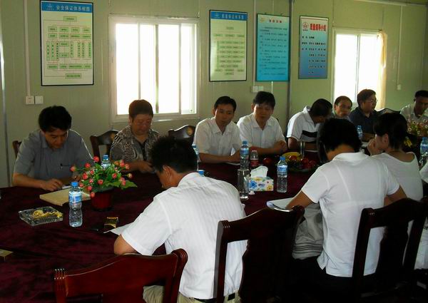 公司領導到泗許01標慰問并對上半年工作進行考評