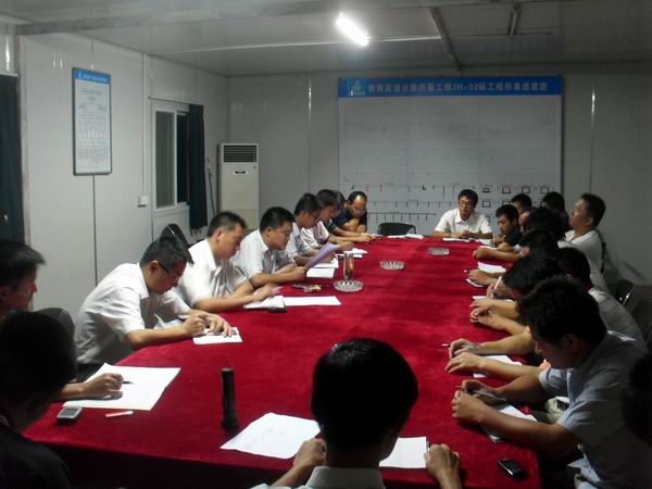 8月9號晚7點半,績黃高速02標項目部在項目會議室召開生產經營分析會議。項目經理張慶書,項目副經理王守武、鳳爾飛,項目總工王秋華,各部門負責人及成員參加了會議。