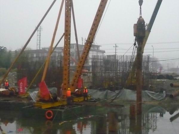 宋斗灣路項目進入打設(shè)河中鋼管樁階段