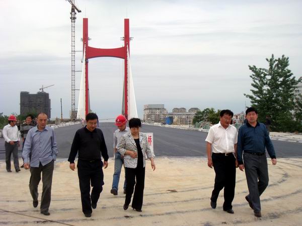 朱紅的索塔雄偉絢麗,扇狀的斜拉索似一雙巨大而潔白的羽翼,剛攤鋪好瀝青的橋面黑亮寬敞而又整潔順暢……遠(yuǎn)遠(yuǎn)望去整個(gè)大橋氣勢(shì)恢宏、身姿優(yōu)美,似長(zhǎng)龍橫臥,如彩虹飛架,在藍(lán)天白云、碧波綠水的映襯下顯得格外的雄偉壯麗。李喬書(shū)記對(duì)大橋壯麗的景色表示滿意,并對(duì)我部保質(zhì)保量如期圓滿的完成大橋主體工程施工予以了充分肯定和贊許,并勉勵(lì)項(xiàng)目部乘勢(shì)而上,做好大橋后續(xù)收尾工作。