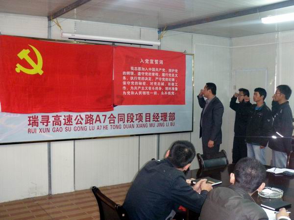 會議第三項(xiàng)議程是由項(xiàng)目經(jīng)理劉大雷結(jié)合項(xiàng)目辦第二階段目標(biāo)提出了我標(biāo)段黨支部在下一階段中的任務(wù)和目標(biāo)要求。劉經(jīng)理指出,在下一階段,黨支部要緊緊圍繞項(xiàng)目辦第二階段目標(biāo),深入一線,提高黨員的政治覺悟,起到模范帶頭作用,以“嚴(yán)要求、高標(biāo)準(zhǔn)”樹立黨員風(fēng)范,促進(jìn)施工生產(chǎn)。