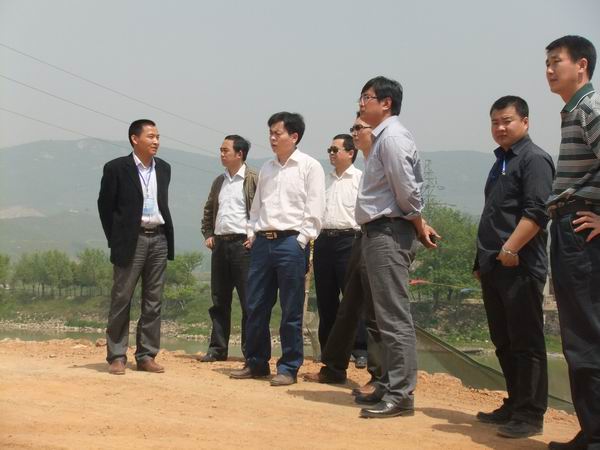何局長(zhǎng)首先來到我部北山河大橋施工現(xiàn)場(chǎng),觀看主橋11#墩部位插板樁完成后的主墩承臺(tái)開挖情況及引橋樁基的施工情況。在聽完項(xiàng)目經(jīng)理冷峰對(duì)當(dāng)前大橋施工的系統(tǒng)介紹后,何局長(zhǎng)對(duì)我部大橋施工的質(zhì)量控制及安全管理提出了具體要求。