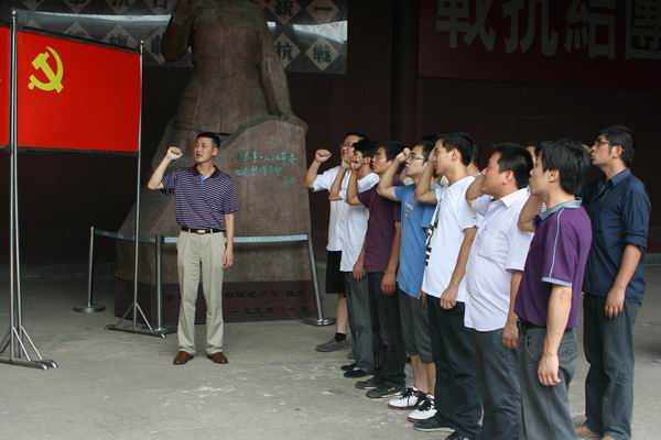 在新四軍舊址大會(huì)堂,由李楊書記領(lǐng)誓,宣貍項(xiàng)目全體黨員同志面對(duì)黨旗,舉起拳頭,再一次莊嚴(yán)宣誓。通過重溫誓詞,激勵(lì)自己牢記誓言,對(duì)黨忠誠(chéng),永葆先進(jìn)。