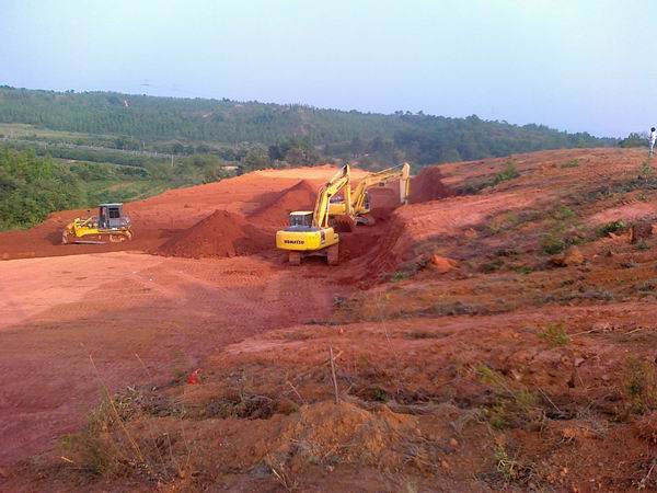我部施工標段全長28公里,項目部將在永豐和吉水兩縣分別設立一座水穩(wěn)拌合站及一座瀝青拌和站。按照業(yè)主要求,8月份完成水穩(wěn)拌合站架設,10月份完成瀝青拌合站架設。項目部已經定出倒排工期計劃表。目前在永豐縣的“一白一黑”兩站已經確定,水穩(wěn)拌和站已具備架設及備料條件。吉水縣我標段所處位置多為山地,且大部分為公益林,經過慎重選擇后,選定了一塊約50畝的山林地作為兩站場地。但此處土方量較大,場地整平土方量經測算約8萬方。項目部將充分利用晴好天氣,加班加點,計劃10個工作日完成場地整平。