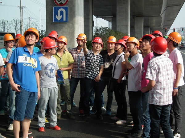 下午15:00,在項目部會議室,該項目總工利用PPT圖文并茂的給學(xué)生們介紹了阜陽北路高架工程概況、施工工藝、工程質(zhì)量控制。隨后,學(xué)生們來到施工現(xiàn)場,該項目總工將學(xué)校中學(xué)習(xí)到的理論知識與現(xiàn)場施工實際相結(jié)合,對阜陽北路高架橋梁的整個施工工藝流程作了深入淺出的講解。