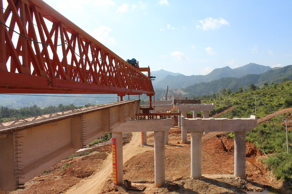 昌寧高速C5標(biāo)完成龍坊高架第一片40米T梁架設(shè) 發(fā)布時(shí)間:2014年09月18日 來源:昌寧高速C5標(biāo) 發(fā)布人: 作者:王振堂 瀏覽:2784次 9月18日上午9時(shí)18分,昌寧高速公路C5標(biāo)龍坊高架第一片40米T梁順利架設(shè)成功,標(biāo)志著作為全線控制性工程的龍坊高架橋進(jìn)入了上部施工階段,極大地提振了項(xiàng)目部全體員工和參建隊(duì)伍的戰(zhàn)斗精神。